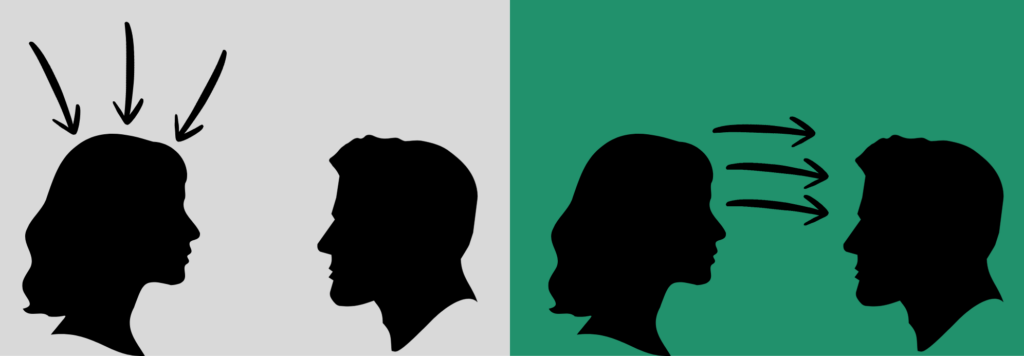 One of the things Cindy had me work on was turning my focus outward. She advised me to shift my thoughts from worrying about my performance in front of Pete to being curious about his perspective. I remember her saying, make it ABOUT Pete when you’re in the room with him. What questions can you ask? What can you do to make him look good? What’s on his agenda? What does he need, and how can you help?